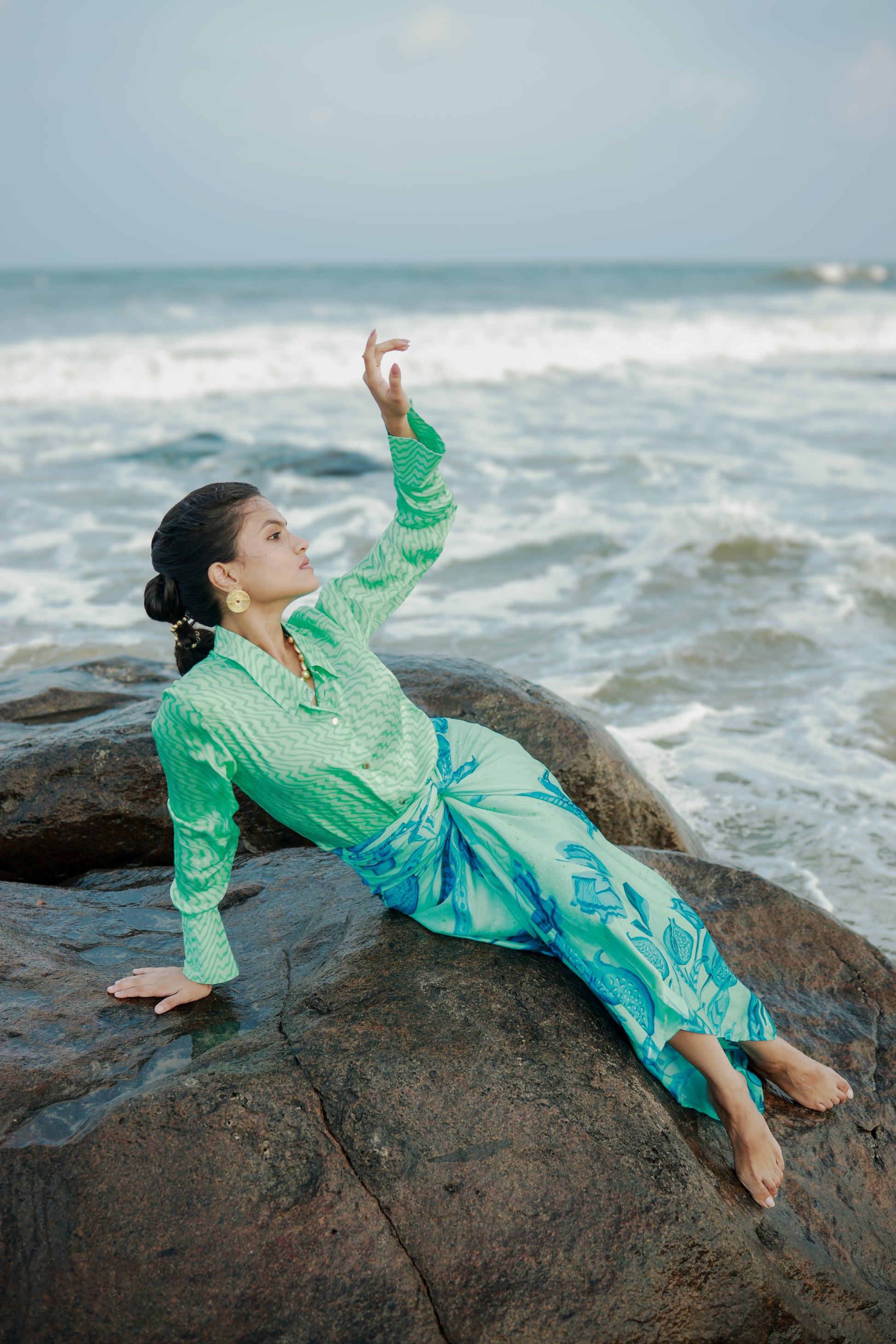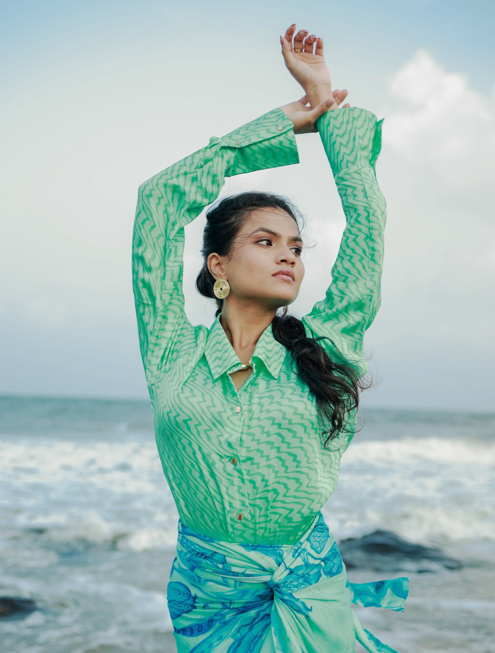 Bell sleeved shirt - The flowy shirt combines chic style with a relaxed, feminine vibe. The soft, flowing fabric drapes effortlessly, creating a flattering, comfortable fit. The bell sleeves add a touch of drama and movement, making it perfect for both casual and dressed-up looks. Whether paired with a draped skirt for an evening event or styled over flowy pants for a brunch, this shirt is versatile and easy to wear.