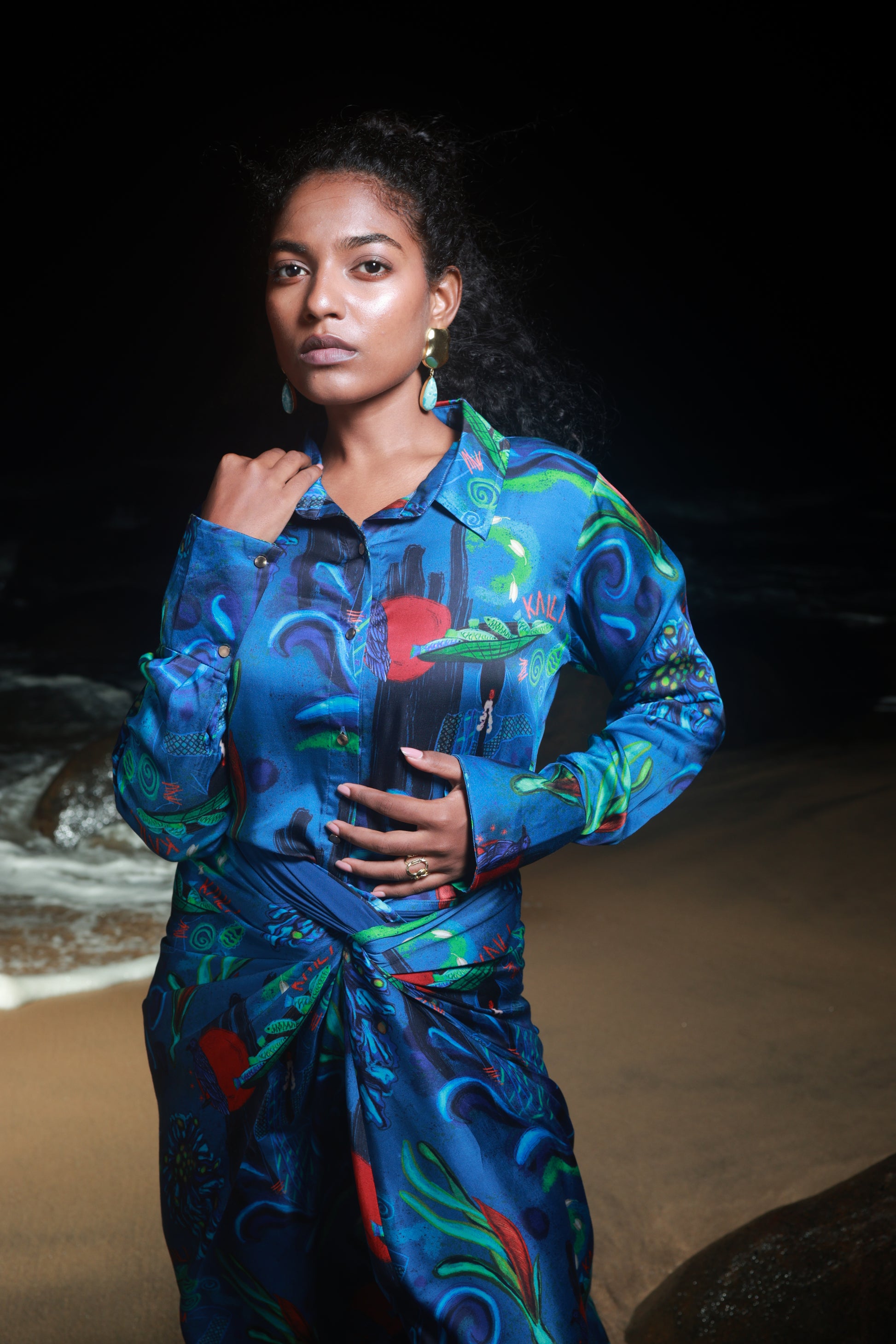 Bell sleeved shirt - The flowy shirt combines chic style with a relaxed, feminine vibe. The soft, flowing fabric drapes effortlessly, creating a flattering, comfortable fit. The bell sleeves add a touch of drama and movement, making it perfect for both casual and dressed-up looks. Whether paired with a draped skirt for an evening event or styled over flowy pants for a brunch, this shirt is versatile and easy to wear.